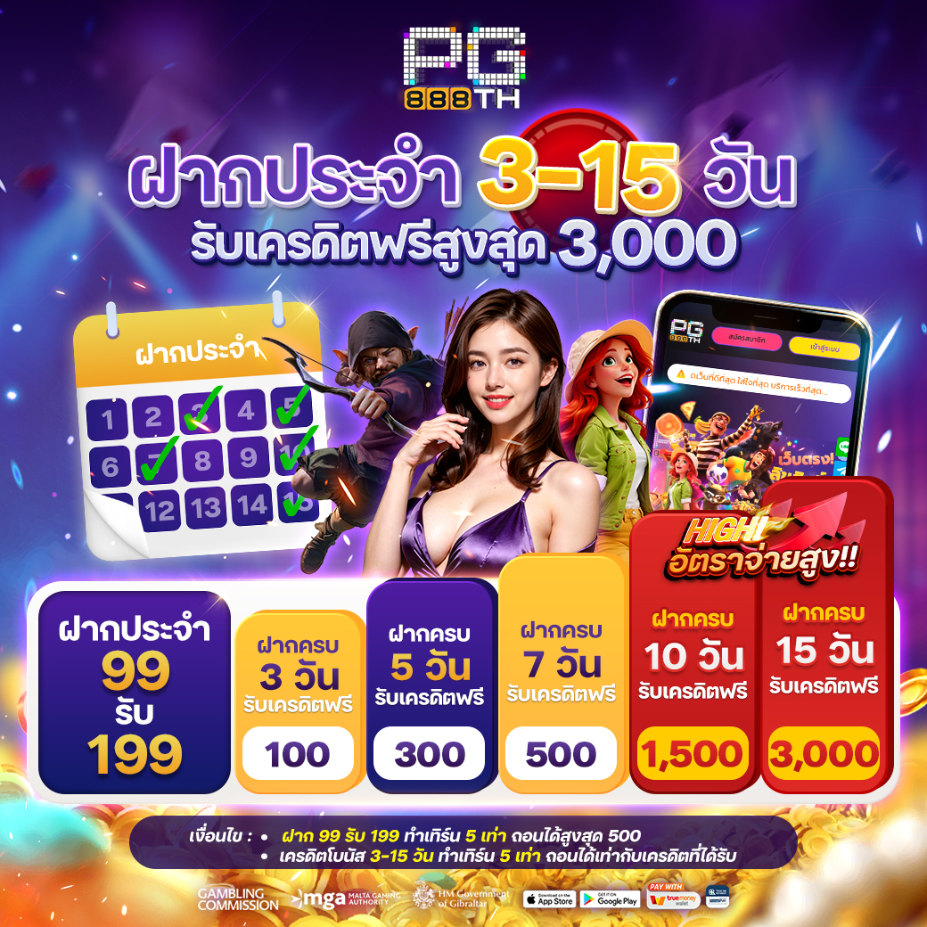 ที่สำคัญ อย่าลืมใช้ประโยชน์จากโปรโมชั่นและโบนัสต่าง ๆ ที่ PG888TH มอบให้ ไม่ว่าจะเป็นเครดิตฟรี โบนัสเงินฝาก หรือคืนยอดเสีย ซึ่งช่วยเพิ่มทุนและลดความเสี่ยงในการเดิมพันได้